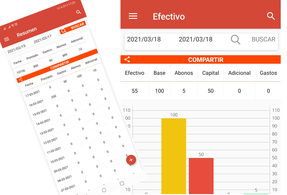 El sistema te mostrara una cuadricula por dia con cuanto dinero prestaste y gastaste, asi mismo podras ver cuanto dinero as recojido